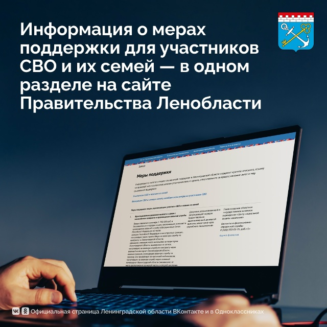 айте Правительства Ленобласти создан специальный раздел, посвященный мерам поддержки участников СВО и членов их семей в нашем регионе: clck.ru/3NDfmW